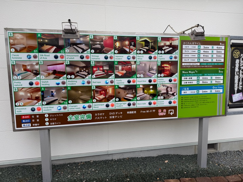 This hotel I walked by seemed a bit odd. There is a board, you can select the design of the room with many different themes, select the duration ranging from a couple hours, to a full day, and pay with your credit card. There is no interaction with another human in this process, other than the one your getting the room with of course.
